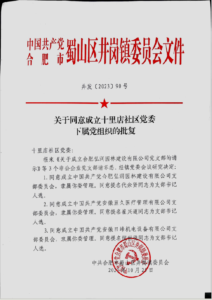 熱烈祝賀合肥弘潤園林建設有限公司成立黨支部